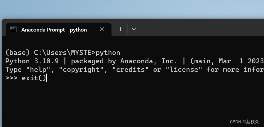 这里面输入python可以看到安装的python版本号,我的是python3.10然后输入exit()回车就好。