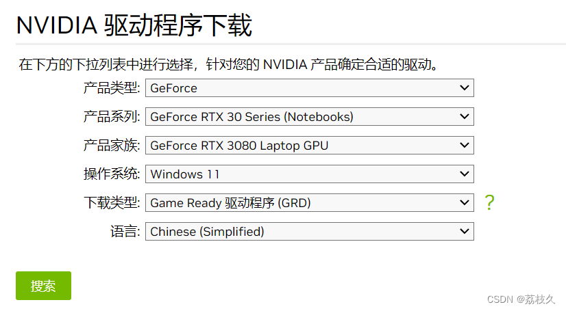 选择自己的显卡型号(如果有英伟达显卡的话,AMD的显卡不可以实用cuda核心训练,如果是AMD显卡直接用CPU训练就行)