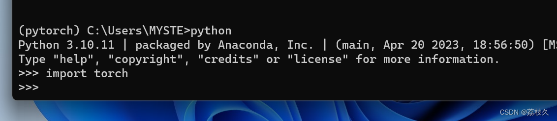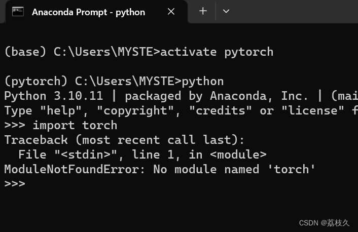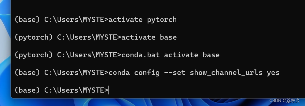 进入pytorch环境(注意是pytorch环境,不是base环境)