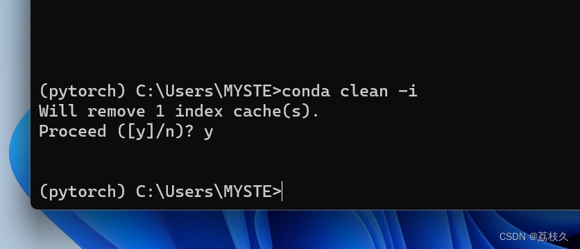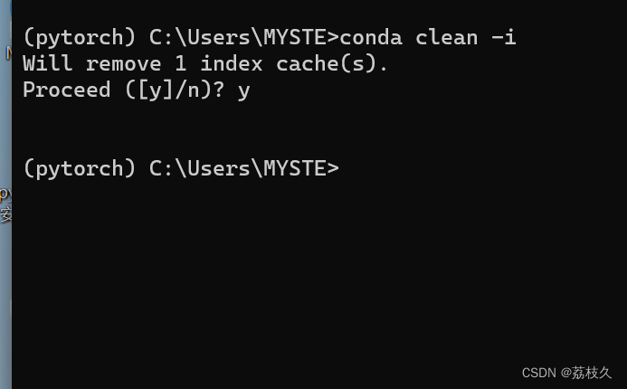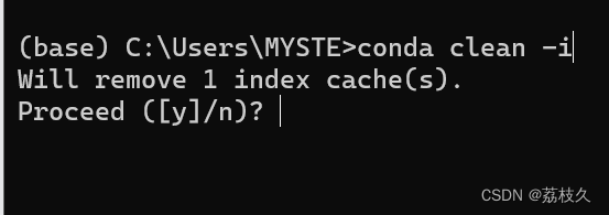在Anaconda prompt 命令窗口运行 conda clean -i 清除索引缓存,保证用的是镜像站提供的索引。然后输入y。