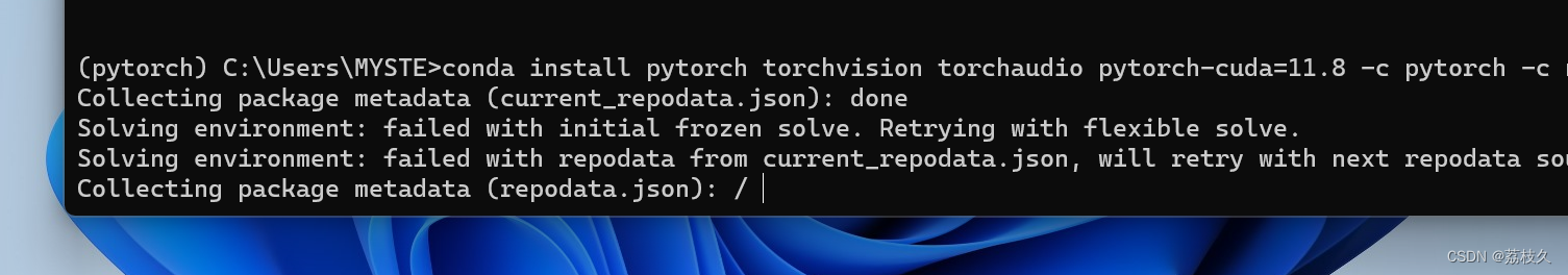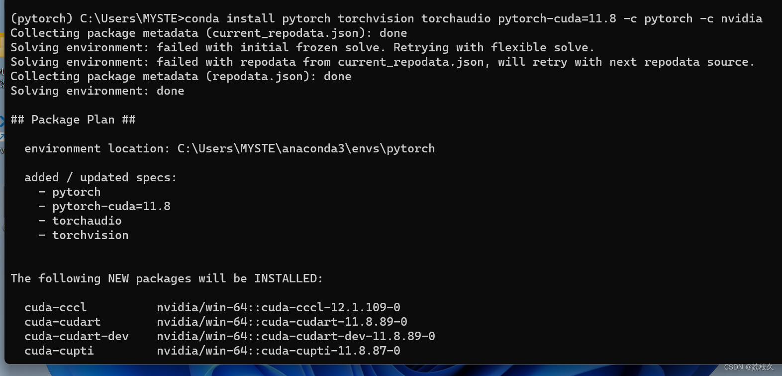conda install pytorch torchvision torchaudio pytorch-cuda=11.8 -c pytorch -c nvidia