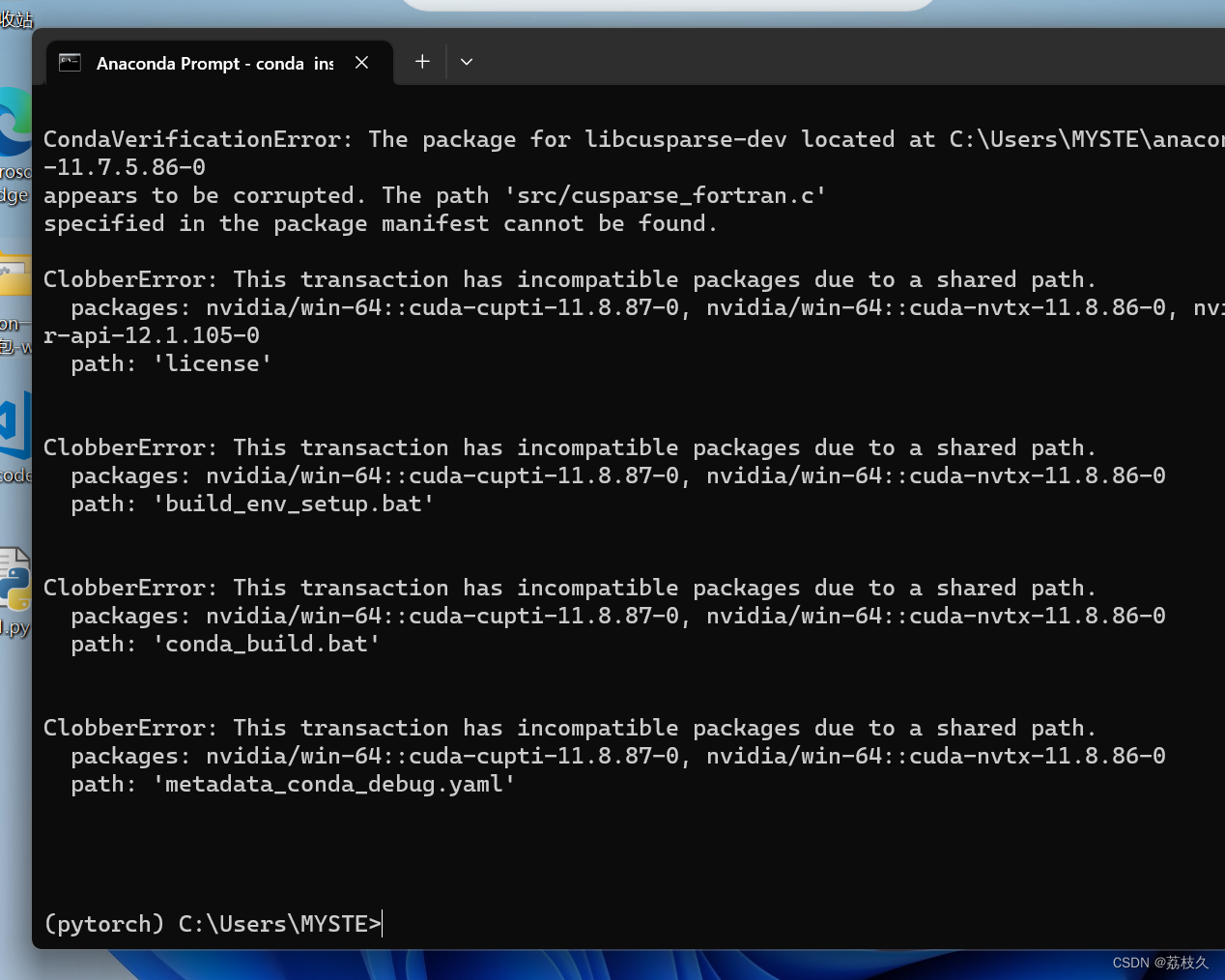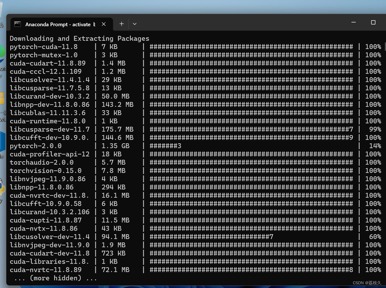 如果中间窗口停止或者终止,重复步骤5(一定要记得清除索引conda clean -i)